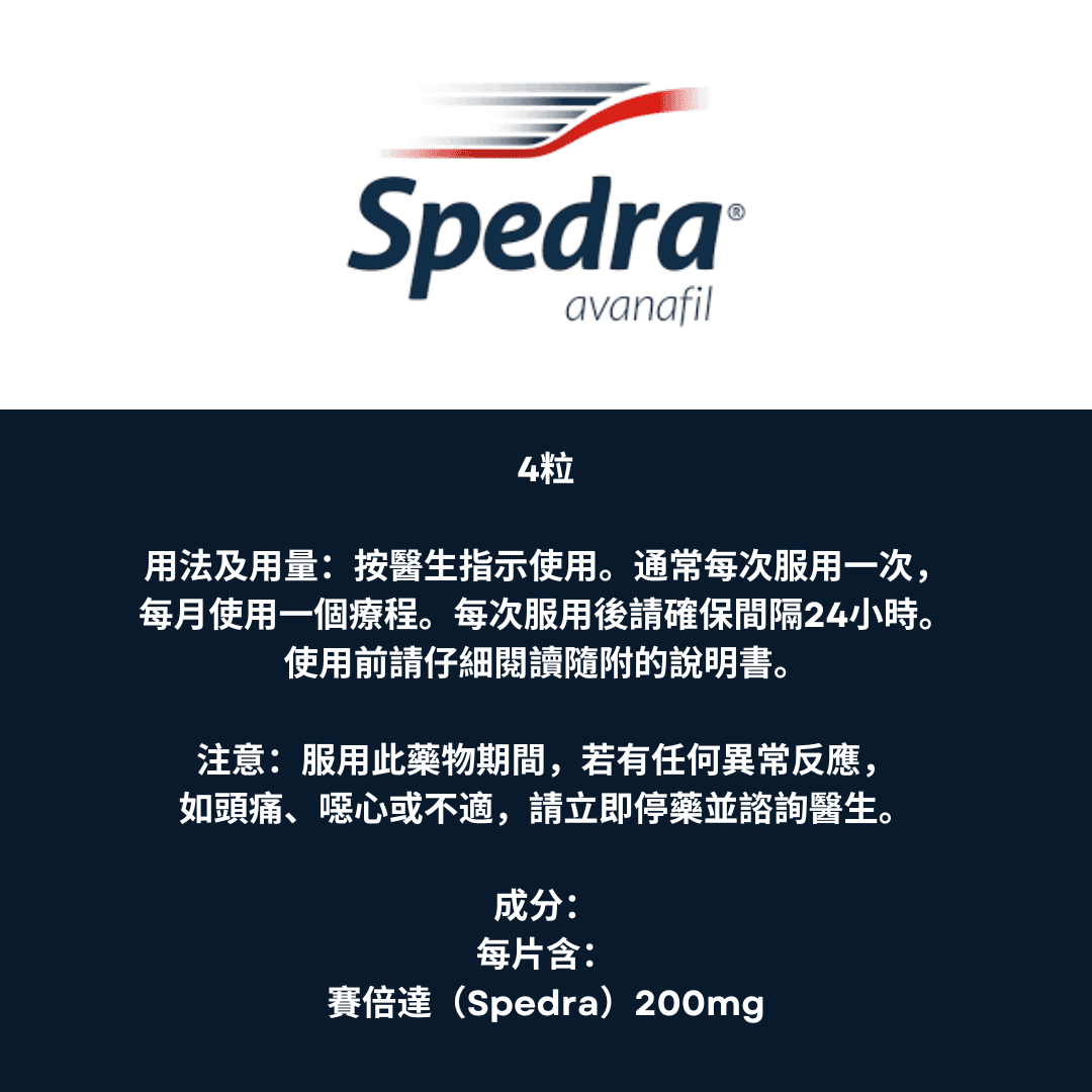 Spedra 200mg 賽倍達 (4粒裝) 商品說明